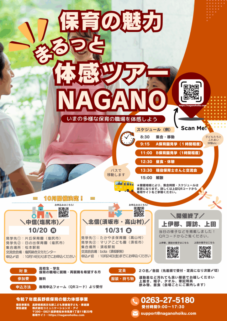 保育の魅力まるっと体感ツアーNAGANO(北信・中信)開催のお知らせ
