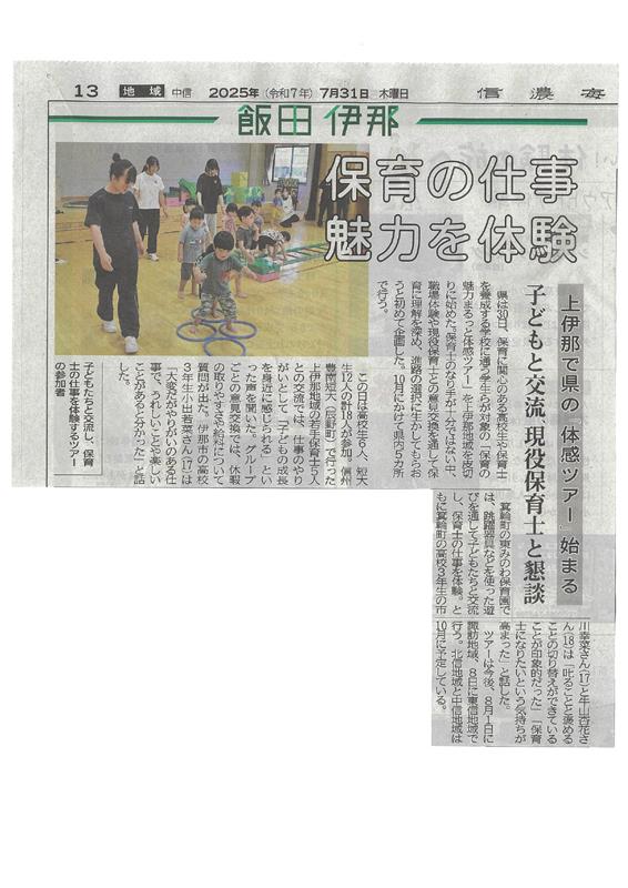 また、南信地域では、信濃毎日新聞社に上伊那、長野日報社に上伊那、諏訪どちらも取材していただきました。